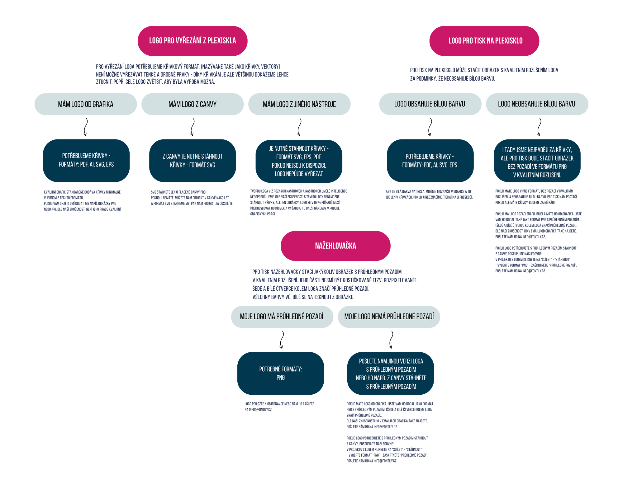 Chápeme, že ne každý se s těmito pojmy setkává denně, a proto jsme pro Vás připravili přehledného a srozumitelného průvodce. Běžte cestou výběru účelu použití loga a budete mít hned jasno, jaký formát loga nám bude potřeba poslat nebo přiložit k objednávce.