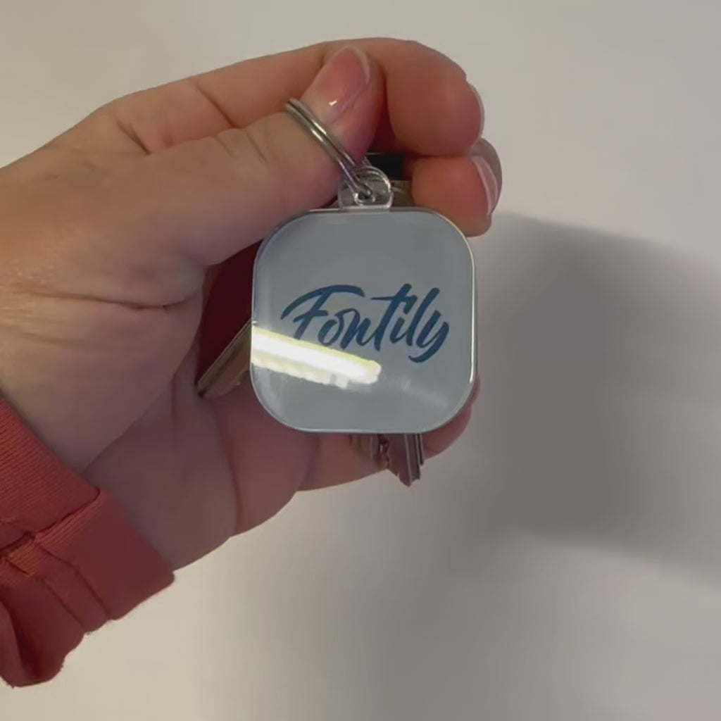 Klíčenka má kompaktní rozměr 4 x 4 cm, který se pohodlně vejde na zavěšení do peněženky, kabelky, na klíče.